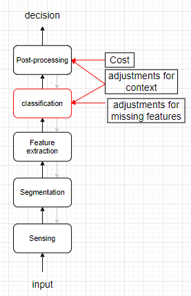 * Post-processor : 다른 고려사항(context, cost of errors...)들을 고려하여 적절한 action을 결정한다.